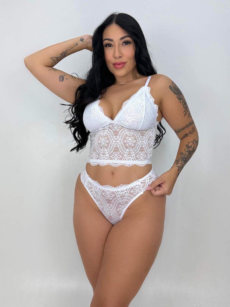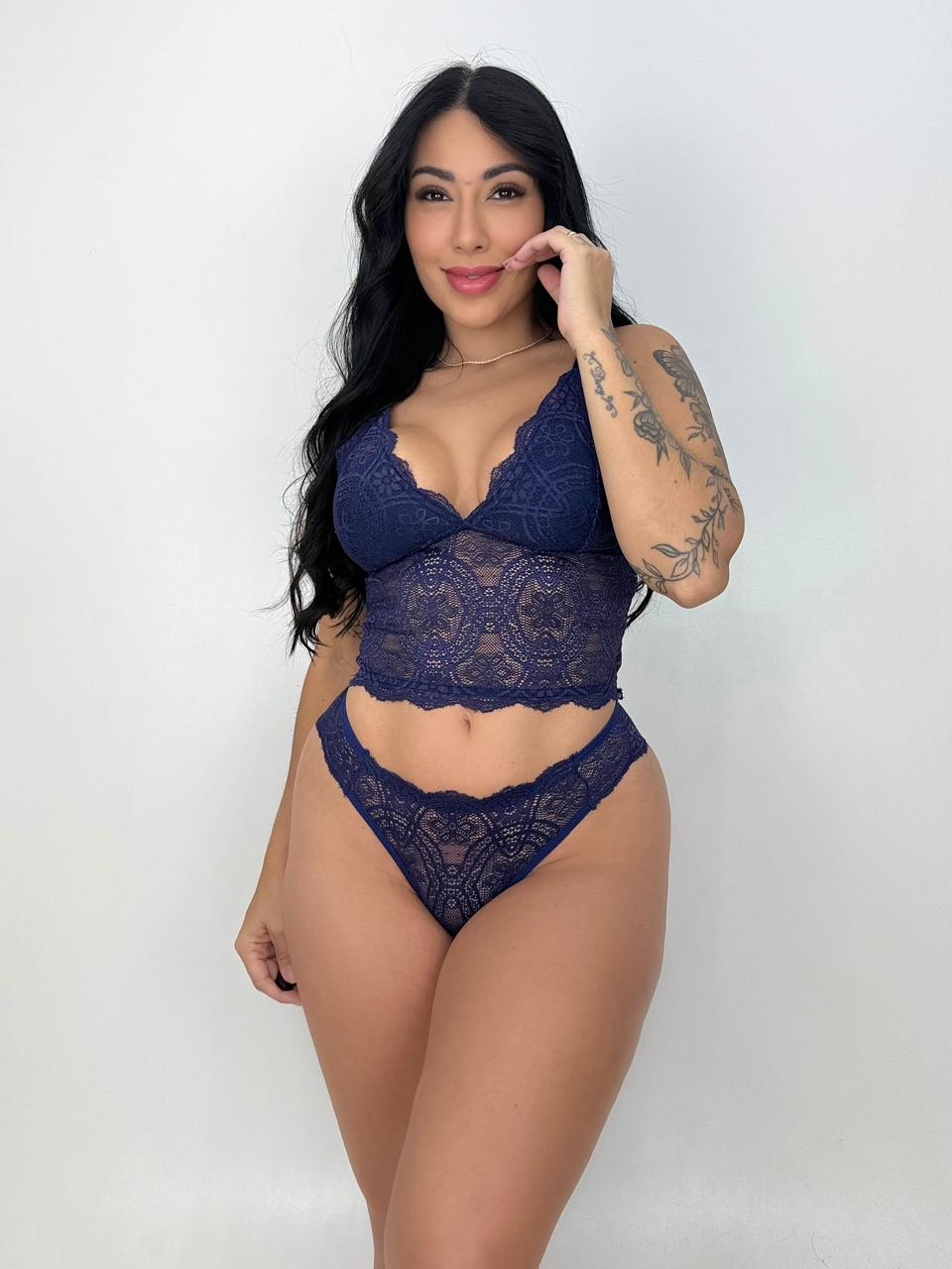 Cropped comprido com forro no busto, sem bojo e sem aro, alças reguláveis e renda vazada no comprimento do top, base com elástico interno para a peça não dobrar na cintura!