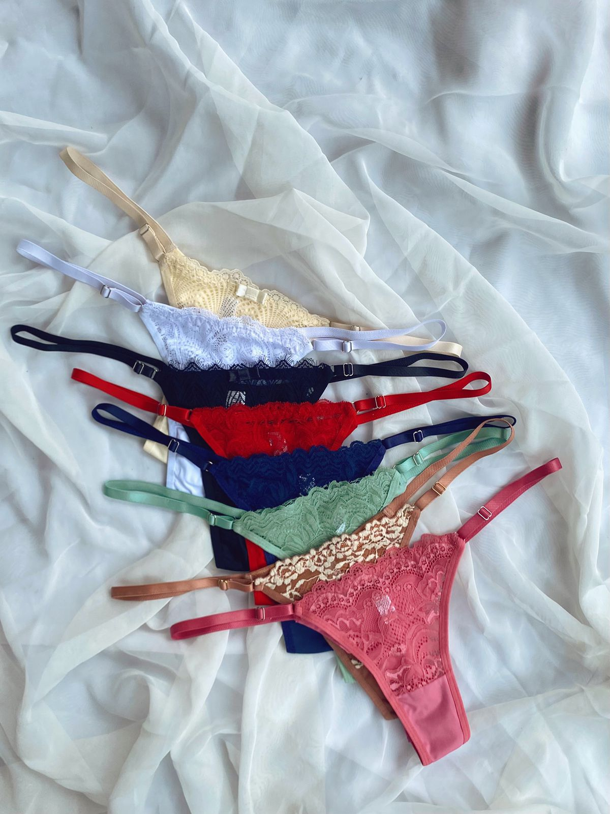 A tanga perfeita para unir conforto, beleza e excelente aceitação de vendas. Modelo confeccionado com renda vazada na parte frontal, trazendo charme e delicadeza, com forro 100% algodão, garantindo conforto e segurança para o uso diário. As costas em fio duplo de poliamida oferecem melhor ajuste ao corpo, sem marcar.