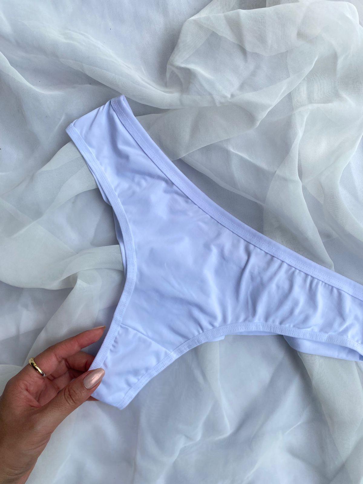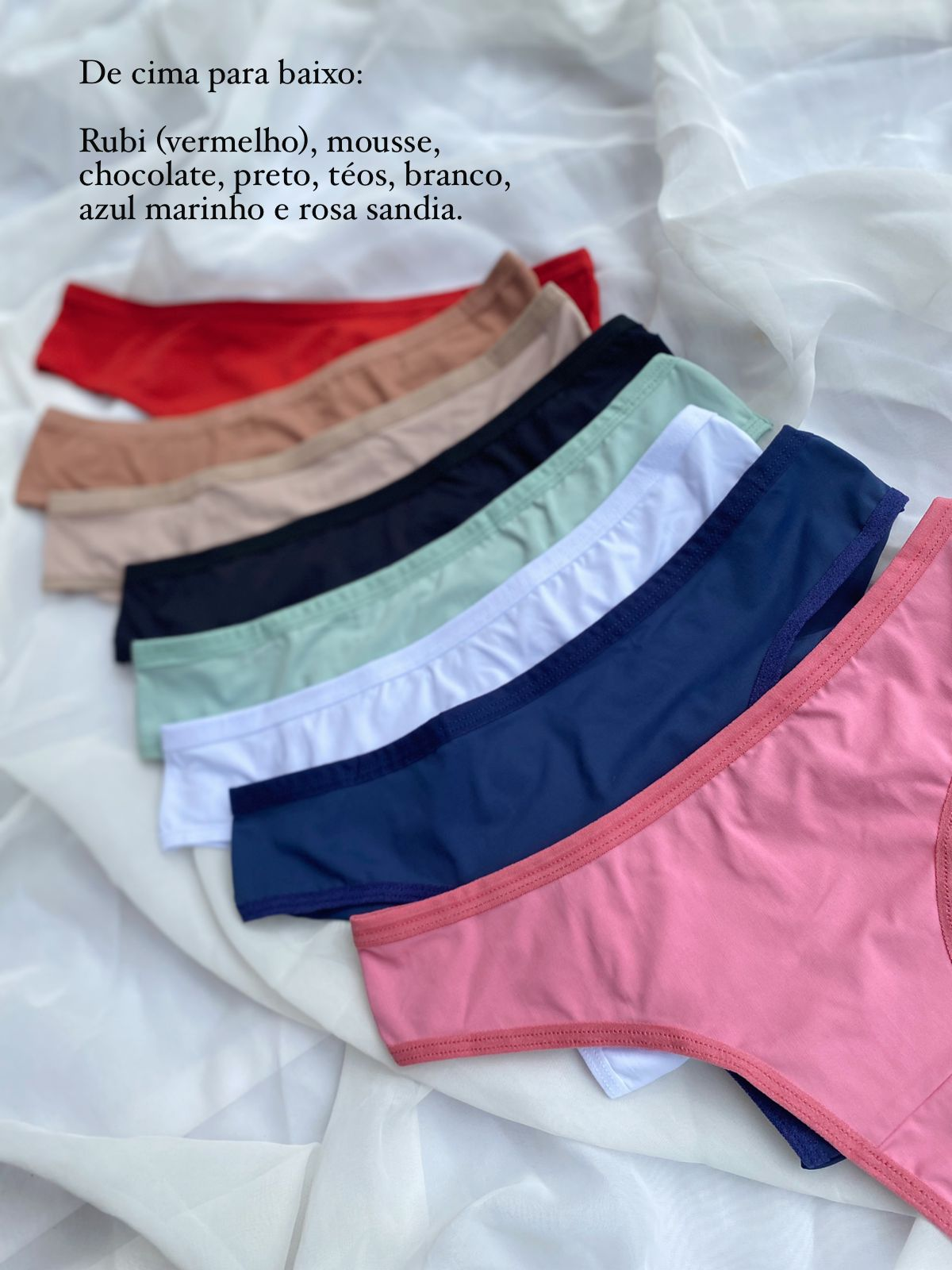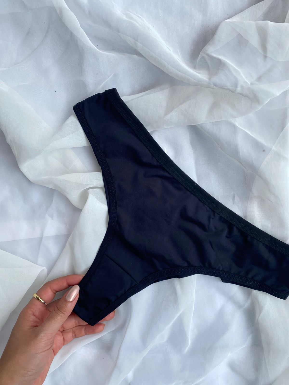 Possui elástico no cós um pouco mais largo, oferecendo maior sustentação e durabilidade, sem aquela sensação de peça frágil. A lateral de largura média proporciona ajuste confortável e seguro ao corpo.