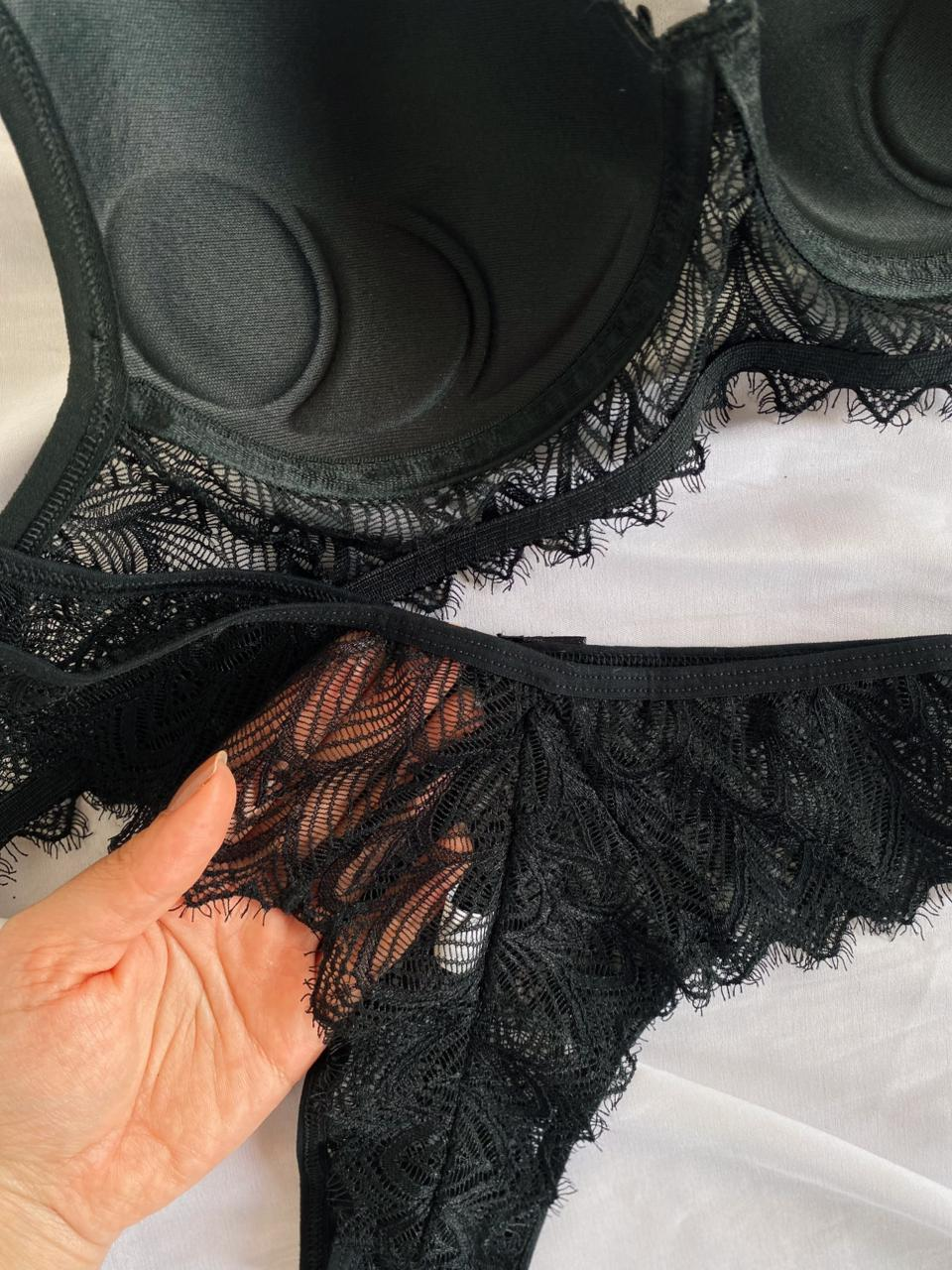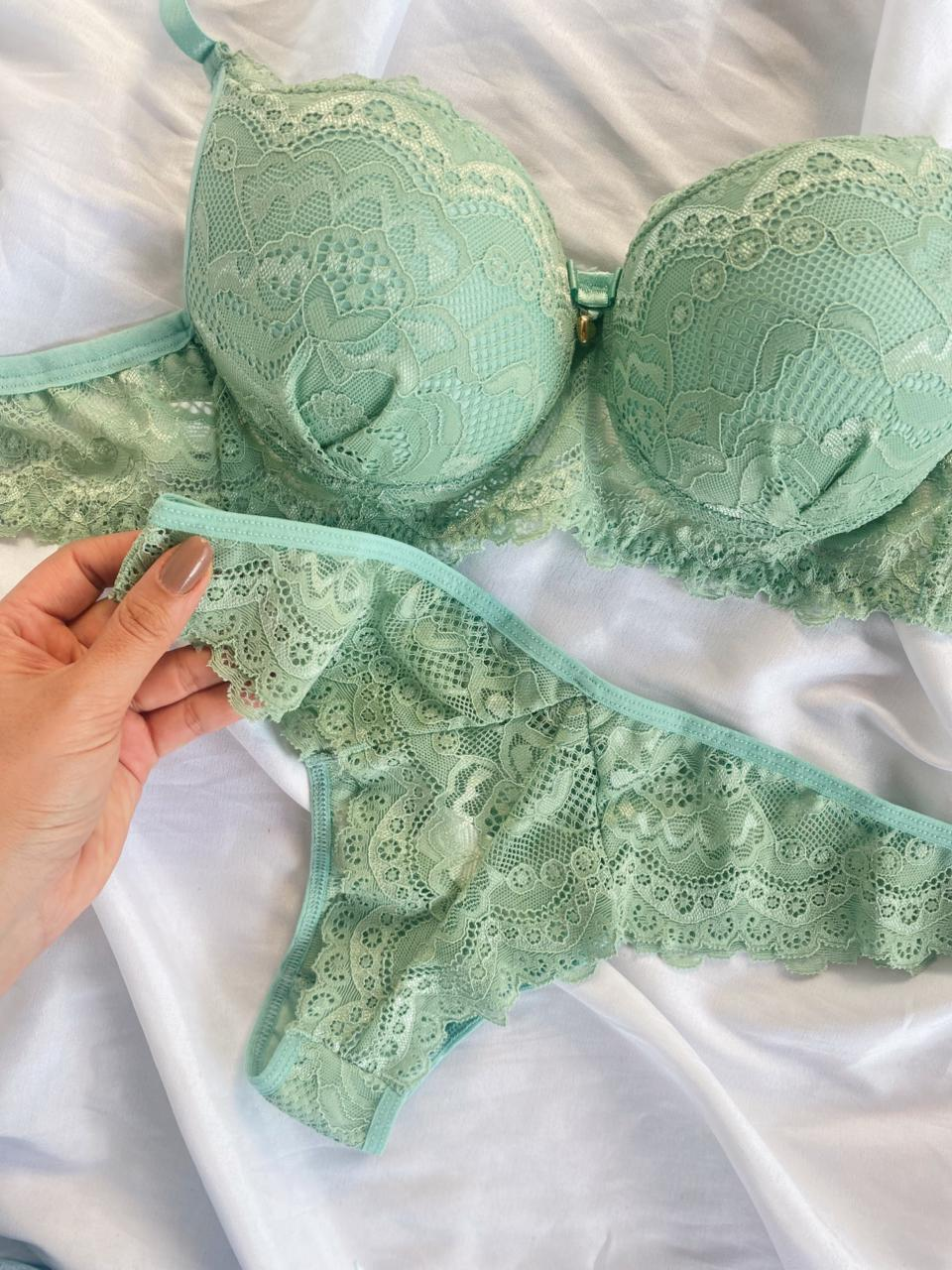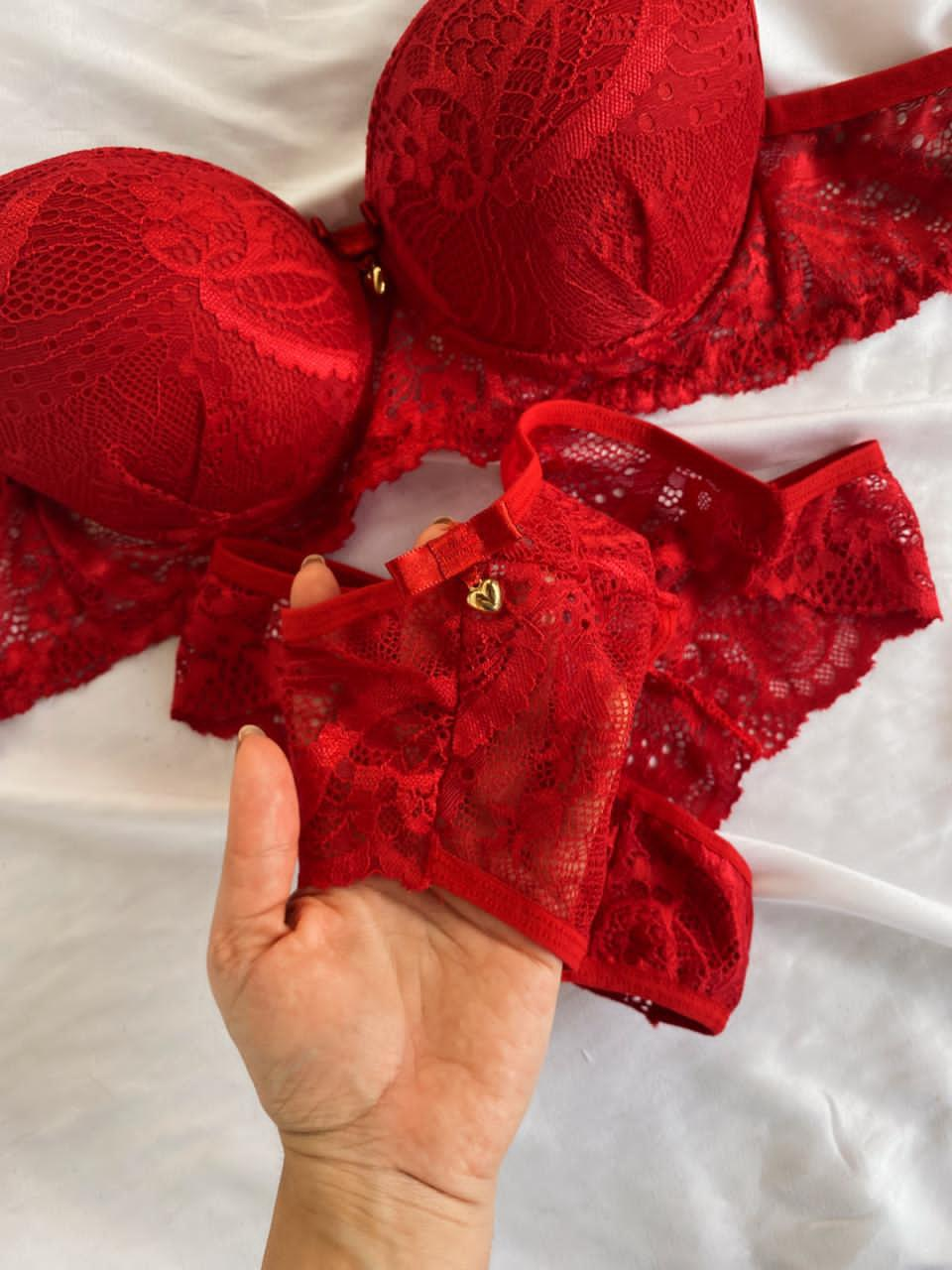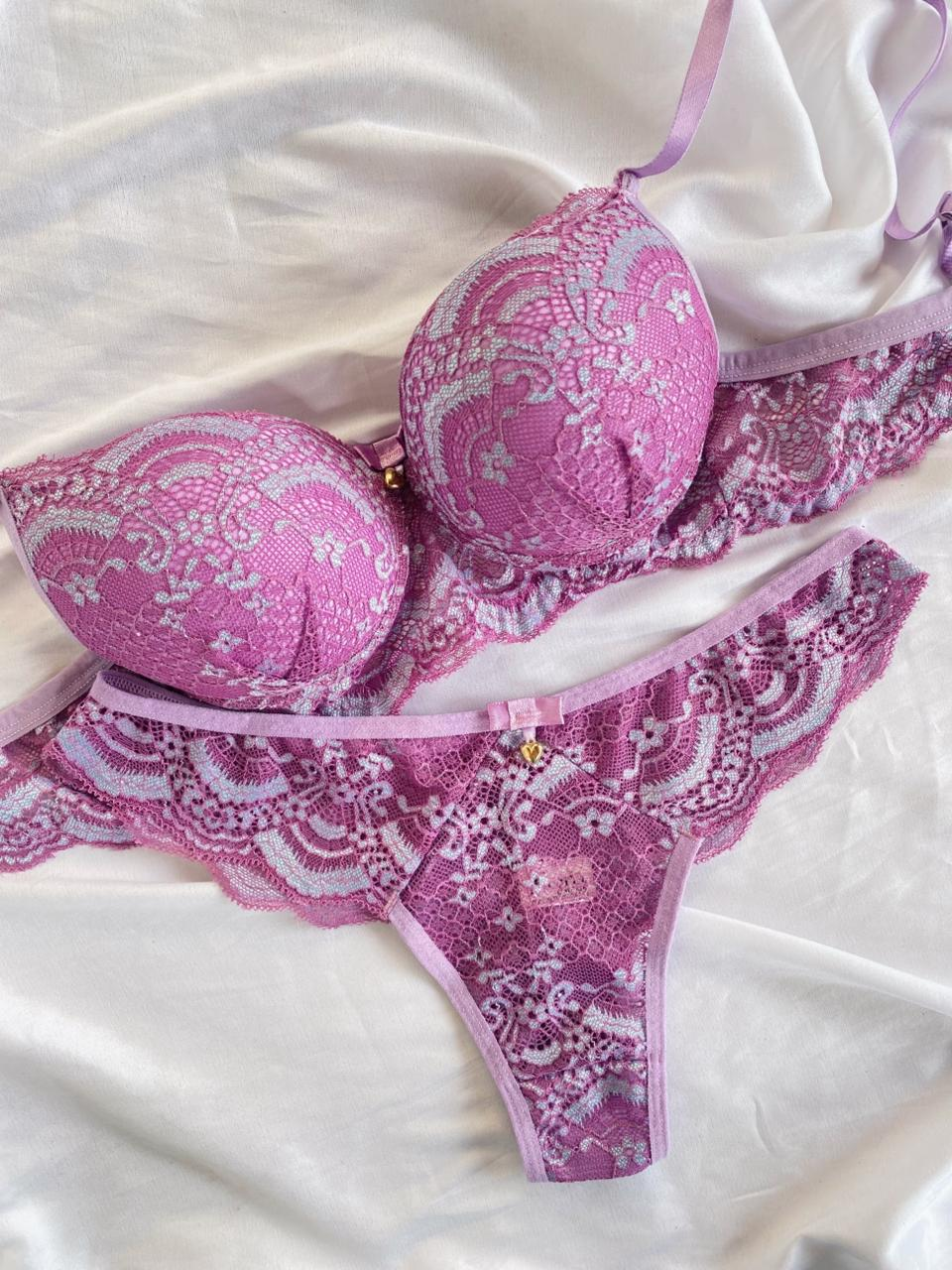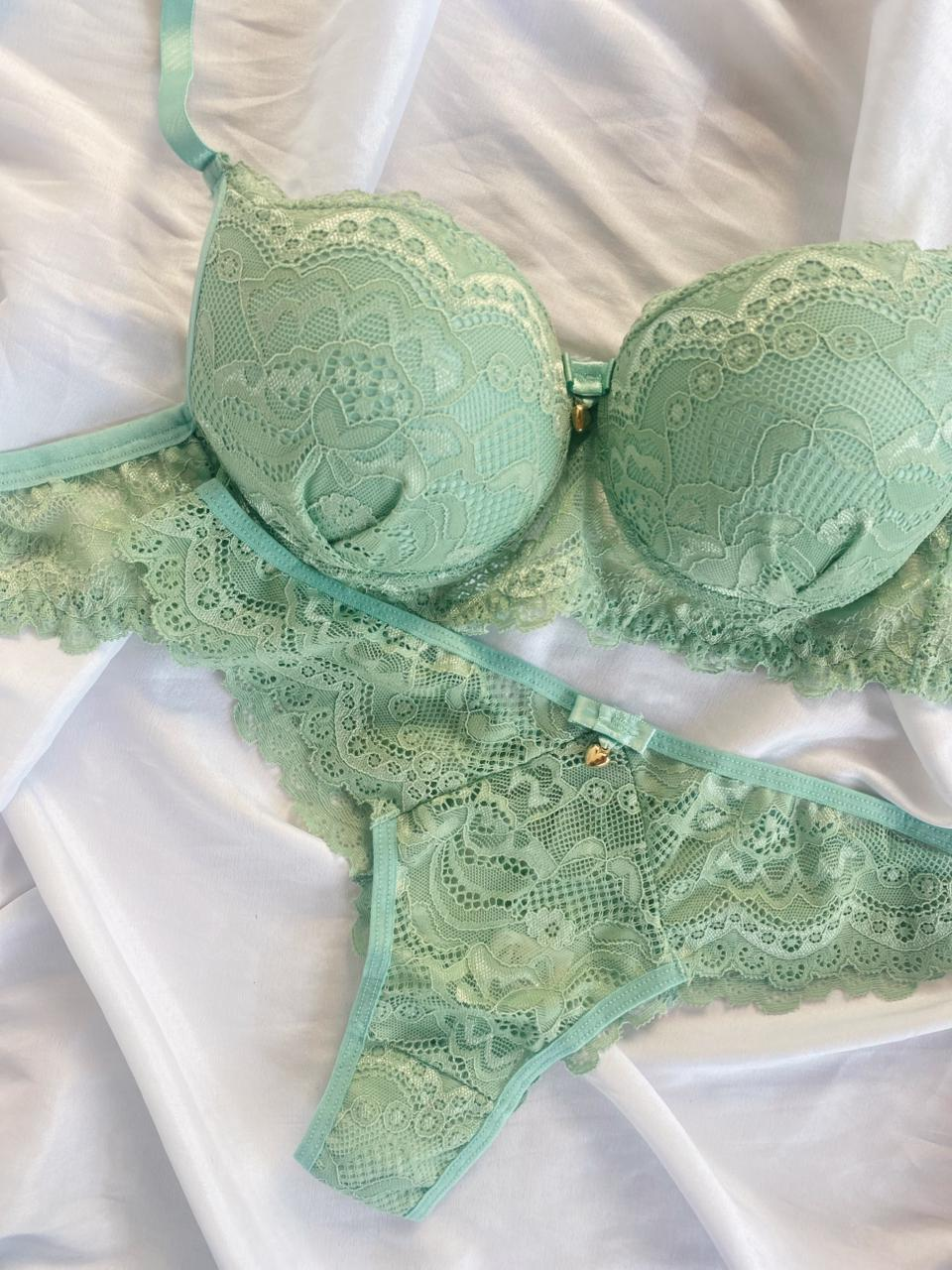 O Conjunto Rute é a escolha ideal para quem busca sensualidade com sofisticação. Confeccionado em renda de poliamida, o sutiã possui bojo com delicado detalhe franzido na parte frontal, valorizando o busto e trazendo um charme especial à peça. Acompanha laço com pingente dourado em formato de coração. As alças possuem regulagem e o fecho traseiro é de encaixe, com duas opções de regulagem.